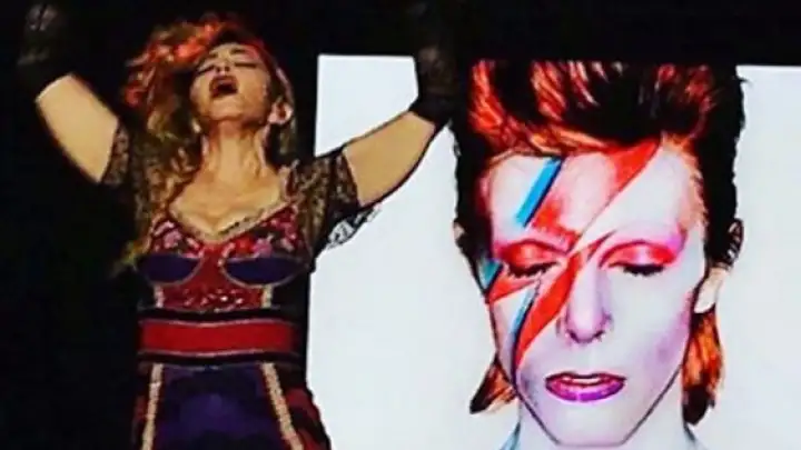 Madonna aproveitou seu show na noite de ontem (12) em Houston, no Texas, para apresentar um tributo a David Bowie.