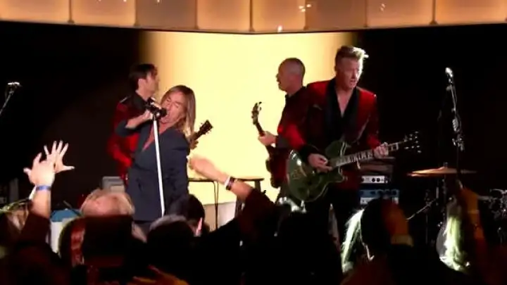 Iggy Pop voltou a se apresentar esta semana em um talk show na televisão americana. O veterano cantor, acompanhado de uma banda com que incluiu Josh Homme do Queens Of The Stone Age e o baterista Matt Helder dos Arctic Monkeys foi ao programa de Jimmy Kimmel para mostrar duas canções.
