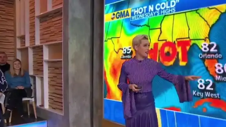 Durante o programa “Good Morning America”, que aconteceu hoje (27), @KatyPerry foi responsável por apresentar a previsão do tempo. pic.twitter.com/IN0S3hn6Mj