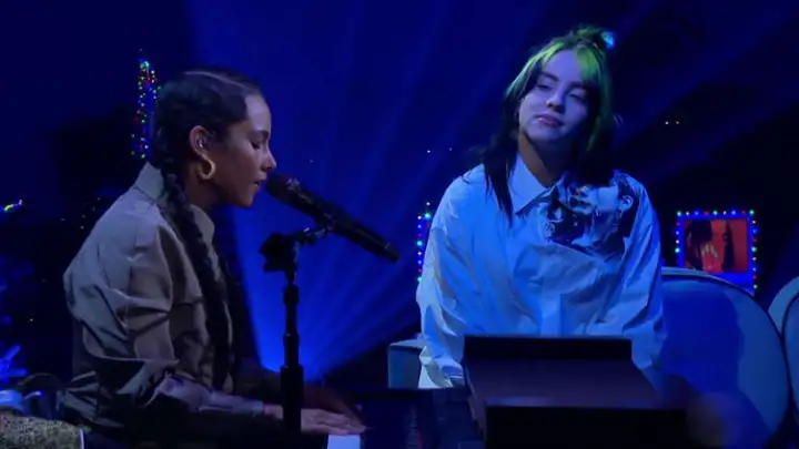 Alicia Keys e Billie Eilish realizaram um dueto inédito para a televisão. As duas dividiram o microfone em "Ocean Eyes", música de Eilish que ganhou um tempero mais sofisticado, caindo para o jazz, nas mãos da cantora e pianista.