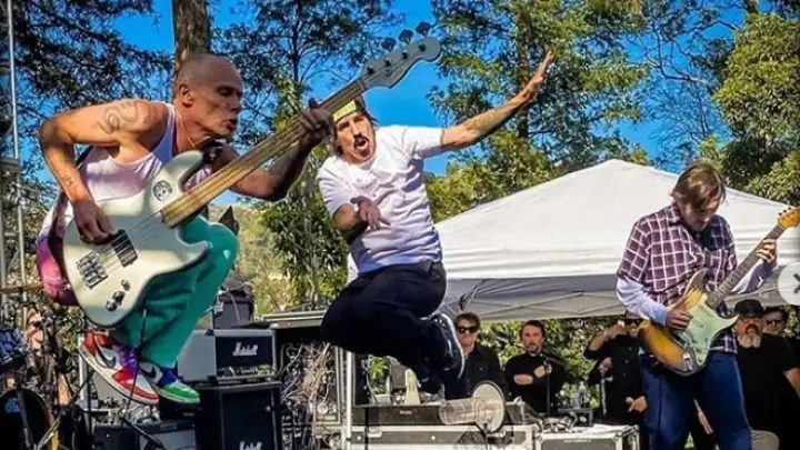 Que cena: Flea, Anthony e John Frusciante tocando Give It Away e Dave Navarro curtindo ?? pic.twitter.com/6n78DgM5Dw