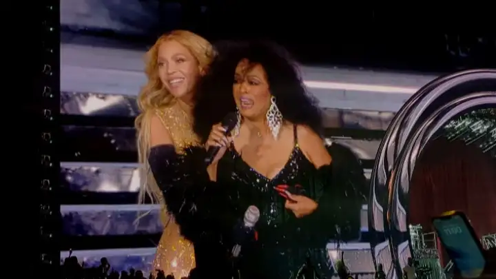 A ex-líder das Supremes entrou em cena quando o espetáculo estava na metade cantando "Love Hangover, um de seus grandes clássicos. Bey apareceu em seguida para abraçá-la e Ross pediu para o estádio cantar "Happy Birthday to You" para a aniversariante.