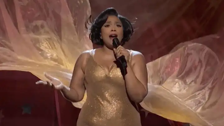 Lizzo agitou o cenário musical ao se apresentar no programa Saturday Night Live, no último dia 12 de abril (Foto: YouTube / SNL). Durante sua participação, a cantora trouxe à tona um medley das faixas "Love In Real Life" e "Still Bad", e também cantou a inédita "Don't Make Me Love You", de seu próximo álbum, "Love in Real Life".