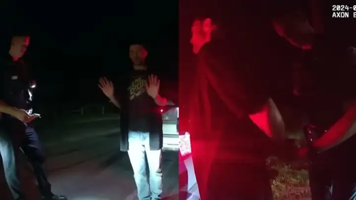Ainda assim, ele manteve um comportamento cooperativo, respondendo aos agentes com “sim, senhor”, mas recusou fazer o teste do bafômetro repetidas vezes, o que levou os policiais a algemá-lo e colocá-lo na viatura.