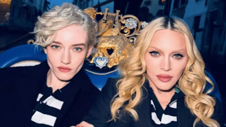 Madonna e Julia Garner apareceram juntas em Veneza, na Itália, em um vídeo gravado dentro de uma gôndola, no qual fazem lip-sync do hit "Like A Virgin". (Foto: Reprodução Instagram)