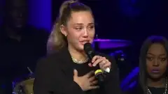 Miley Cyrus se emociona ao discursar no funeral de Janice Freeman, participante do "The Voice"